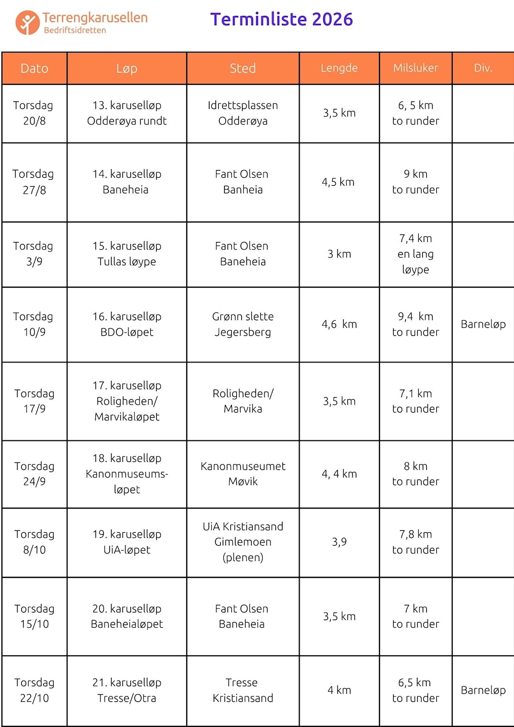 Terminliste Terrengkarusellen Kristiansand 2026